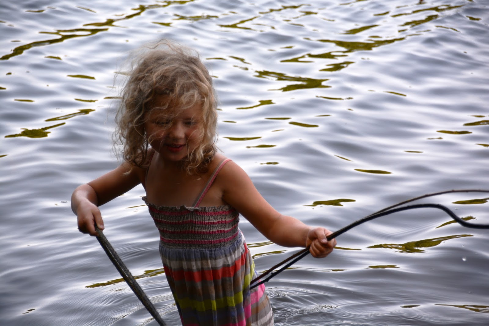 This morning she splashed in the lake, gradually getting more comfortable in the water, and before she knew it, she was wet to her bottom. And that inspired endless giggles from her (and from her aunt).